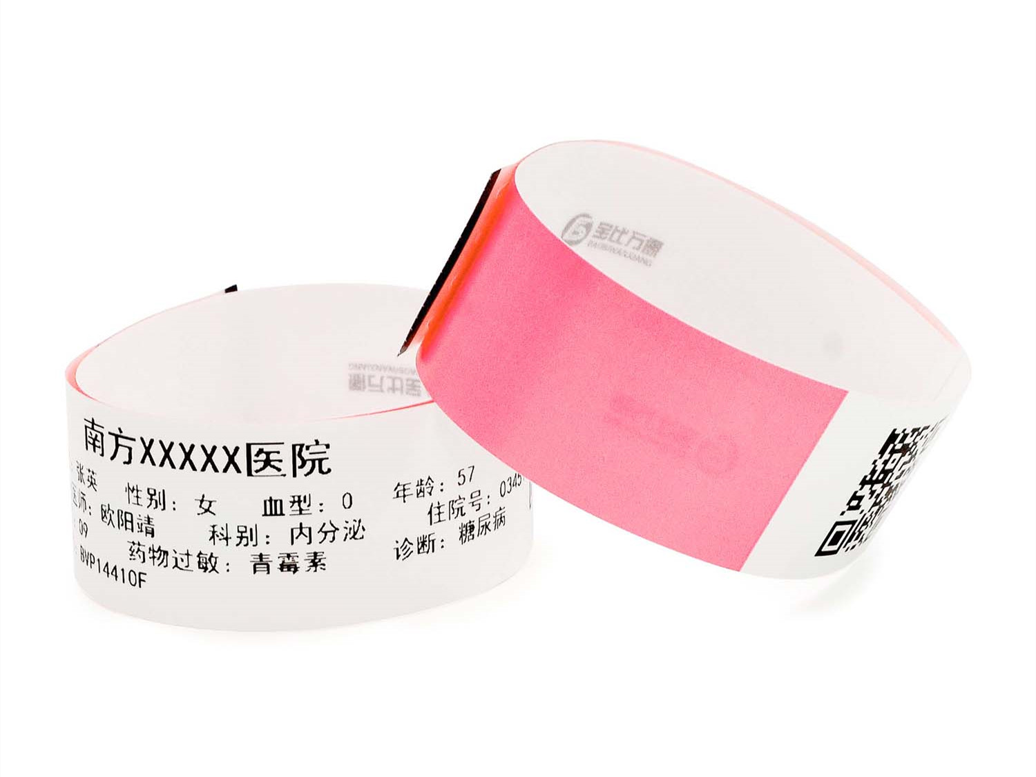 选择有质量认证的腕带。例如宝比万像腕带拥有ISO9001国际质量认证和CE认证,这样才对腕带的质量负责,让医院使用的时候更加安全放心。