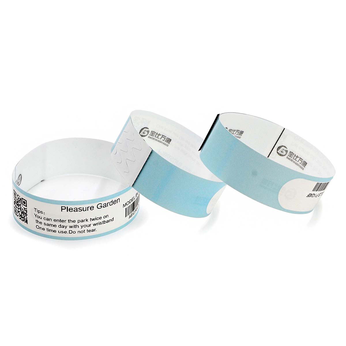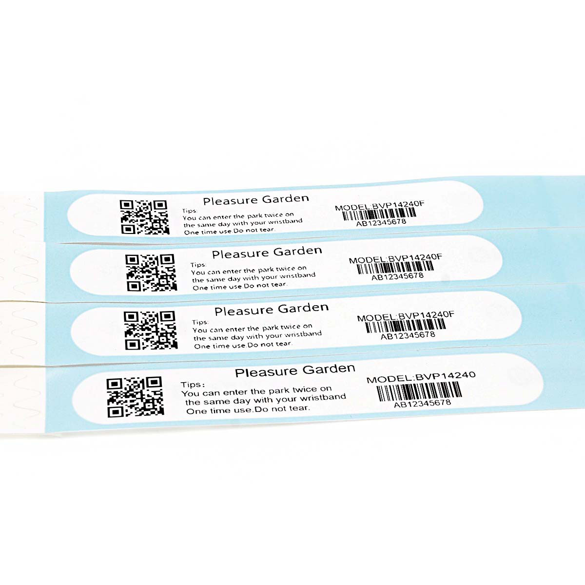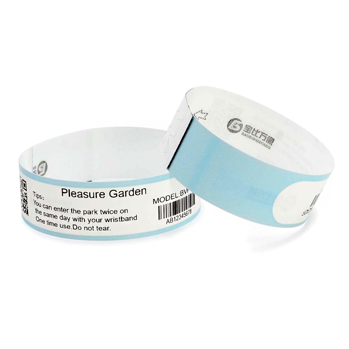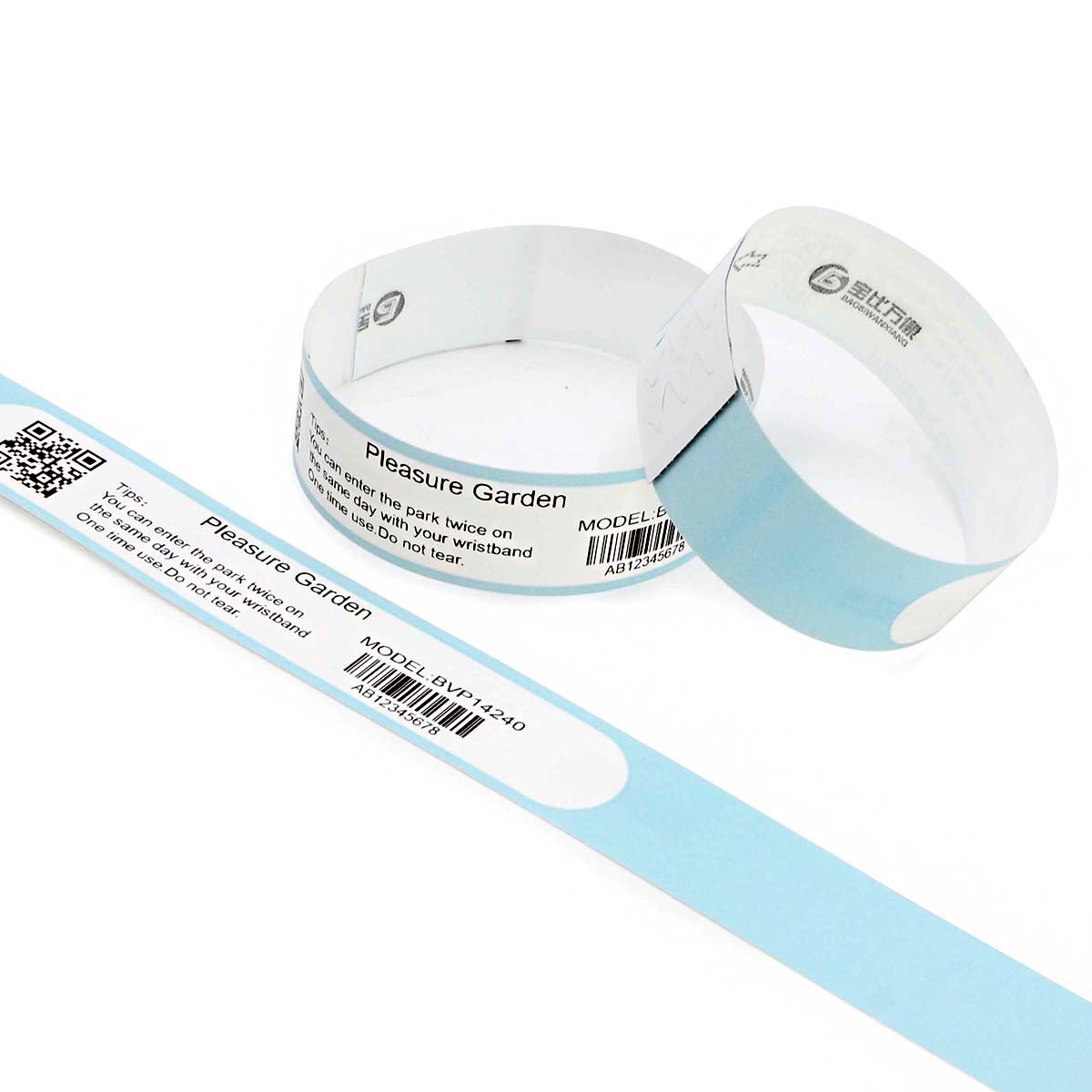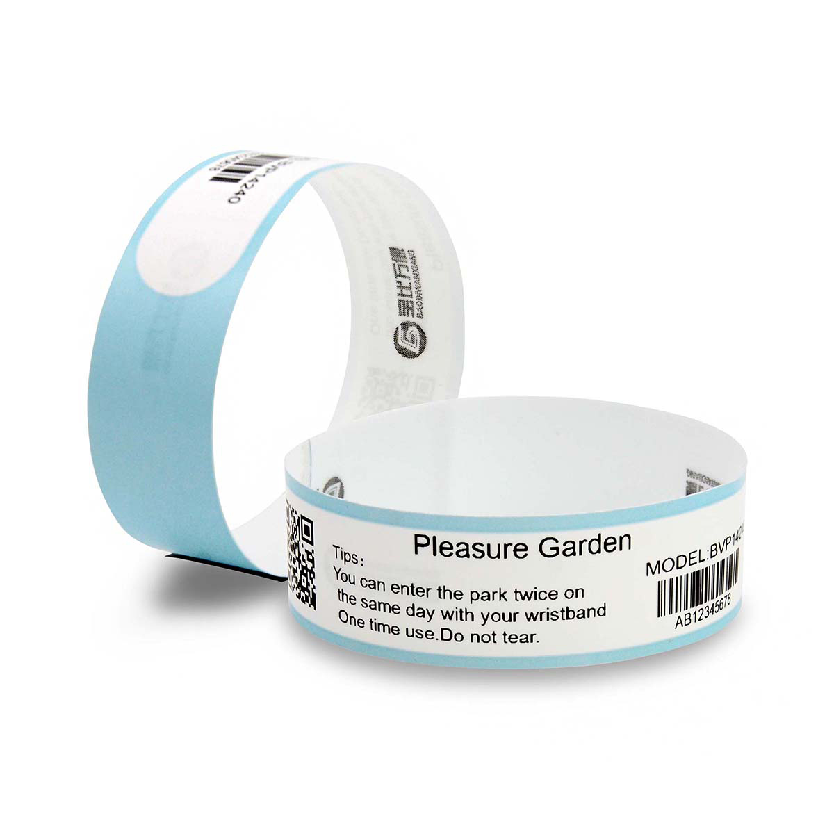 Barcode Printable Thermal wristband BVP14240F can be used instead of tickets. In addition to effectively identify the identity of the person, the barcode or two-dimensional code on the wristband can also be used as the only ticket voucher to prevent ticket evasion and multi-use of a ticket. With the Bao Bi Wan image intelligent ticket cloud system, it can also realize self-service ticket collection and self-service ticket checking, release the labor cost of manual ticket checking, but also improve the efficiency of ticket checking. The ticket data can be queried in real time when not on site, and how many people enter the site today is clear at a glance, without manual statistics. Suitable for amusement park, scenic area, amusement park, theme park, concert, activity place, etc.