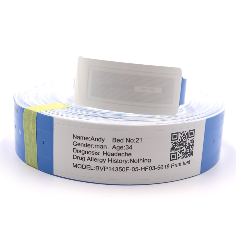 High frequency medical wristband is a combination of traditional barcode wristband and high-frequency passive RFID technology. In hospital management, as a medium to realize the non visual identification of patients, it can replace the existing patient information card in front of the hospital bed, and conveniently realize a series of operations such as rapid identification of patients' identities, efficient data collection, accurate verification, medical order execution and management, which greatly improves the efficiency and quality of nursing patients, and accelerates the intellectualization of the hospital The digitalization process makes medical treatment activities and medical services Intelligent in a real sense.