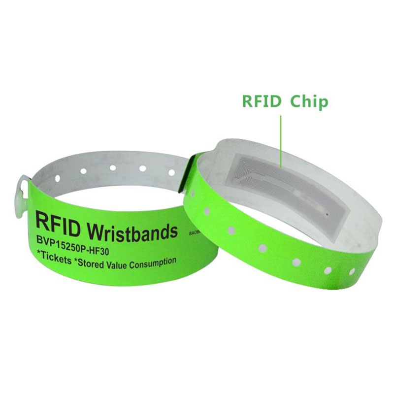 Traditional handwritten and printing barcode wristbands surface information is visible, barcode can be easily damaged, and also information storage is limited.Compared to traditional wristbands,RFID wristband supports to save personal identification information in the chip , even the surface is worn out, it does not affect the storage of chip information. The chip information can be encrypted to protects the information security of wristband users. The RFID wristband is one-time use, guarantees the accuracy of identification, and can be read from a long distance, making management more intelligent and convenient. It can be widely used in all personnel identification products, including identification, storage of information, payment, personnel management, personnel flow management analysis, etc.