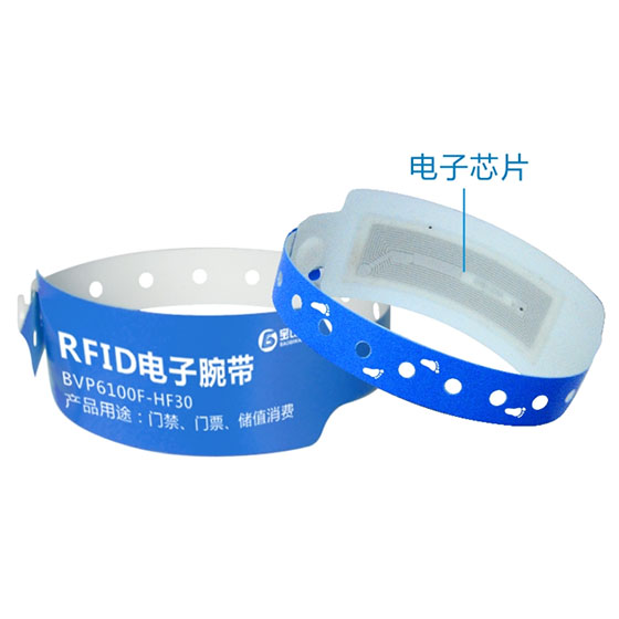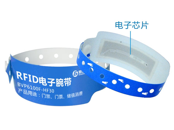 RFID电子腕带BVP6100F-HF03一次性使用,可以远距离读取,广泛应用于所有人员识别的产品,包括身份识别,存储信息,支付,人员管理,人员流向管理分析等,可作为门禁腕带、门票以及储值消费用。