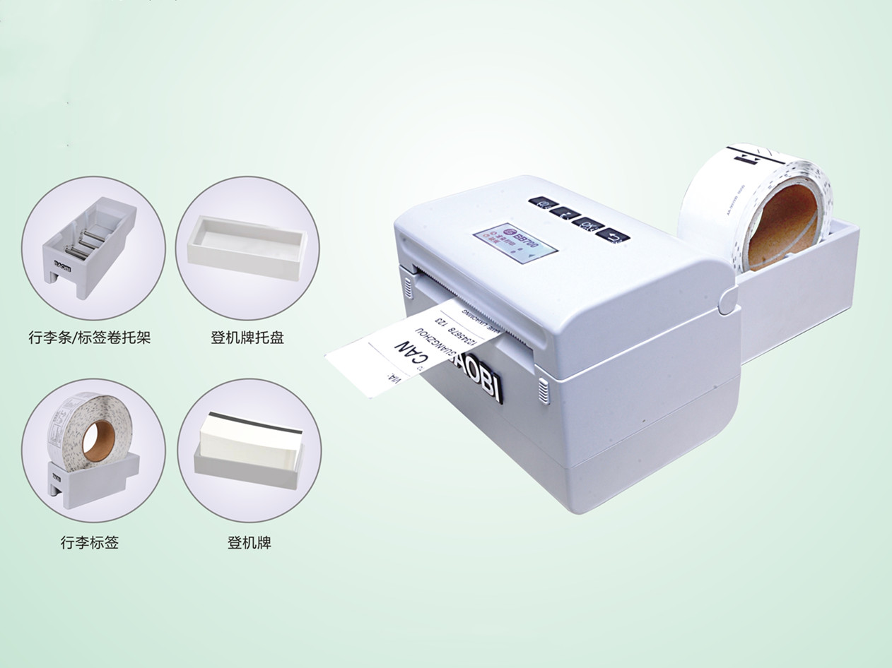 航空行李条登机牌打印机BB700支持窜口、网口、USB数据连接方式接入航空系统,热敏打印,203dpi,2秒即可打印一张行李条标签。