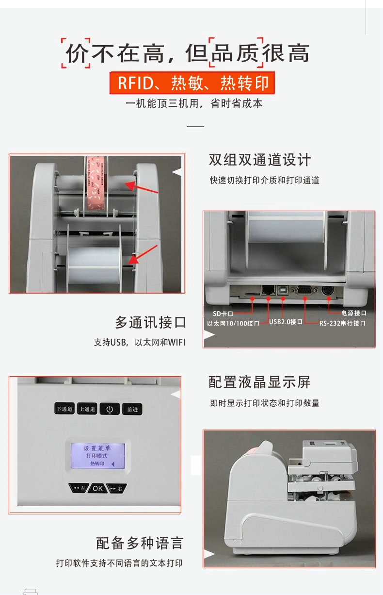 9.可同时放置双卷热转印大卷标签或双卷热敏大卷标签;
